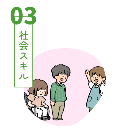 仲間と一緒に楽しく身体を動かしたり、時間を共有することで運動能力の向上や非言語コミュニケーションを図ります。